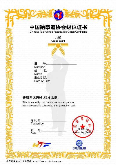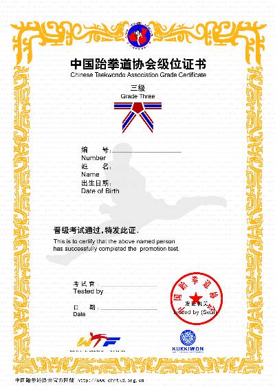 中国跆拳道协会于2013年12月20日进行了协会换届工作。为了加强协会管理职能,按照协会领导要求,中跆协对会员证书和级位证书的样式、管理及发放流程进行了调整。新版会员证书及级位证书增加了防伪功能,由中跆协统一印制、编号统一管理、专人负责。
